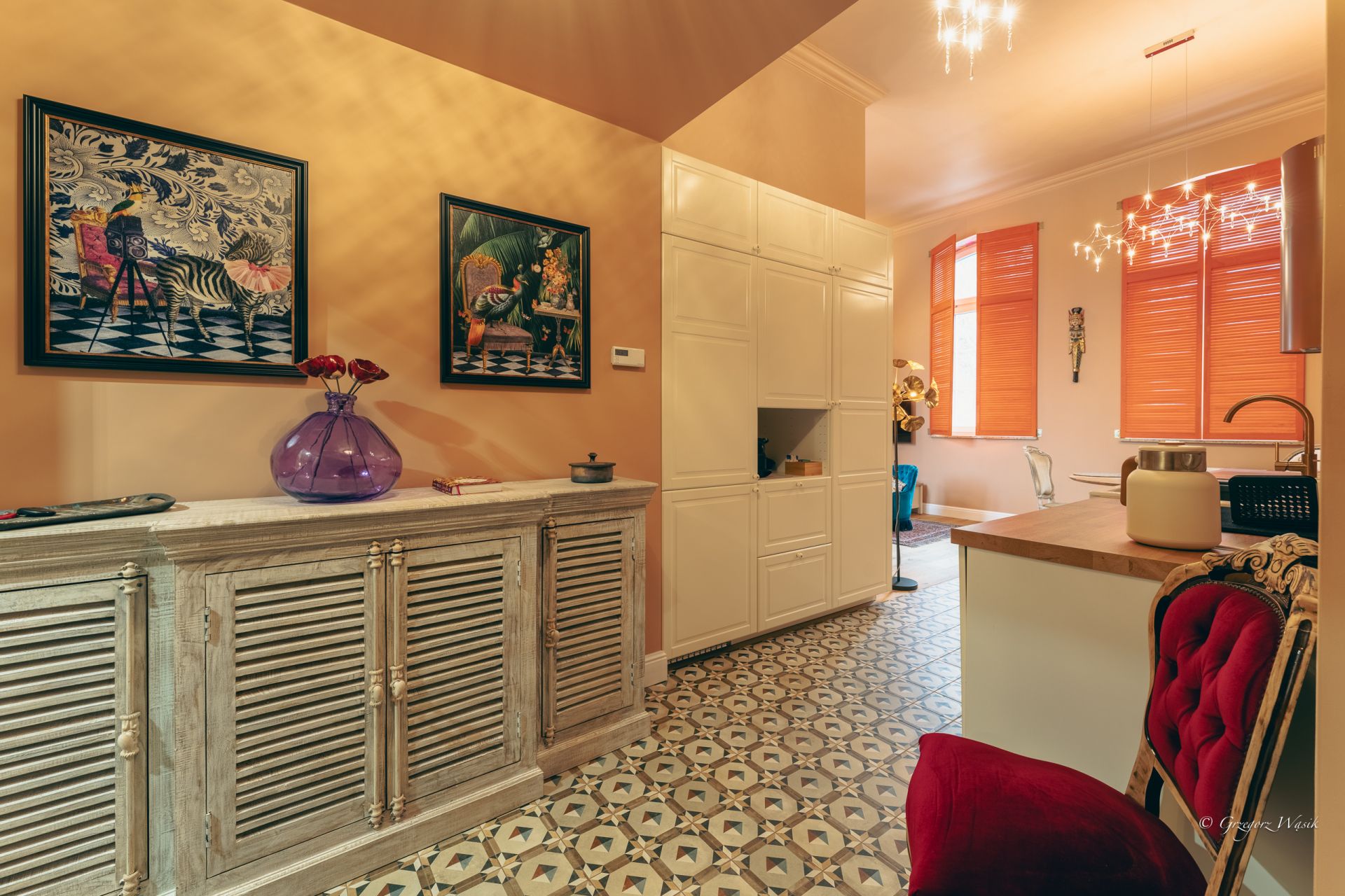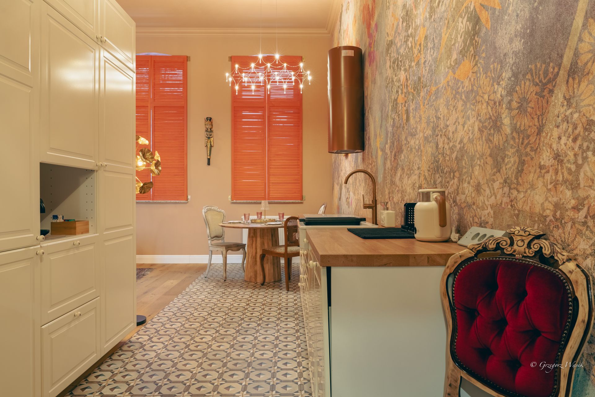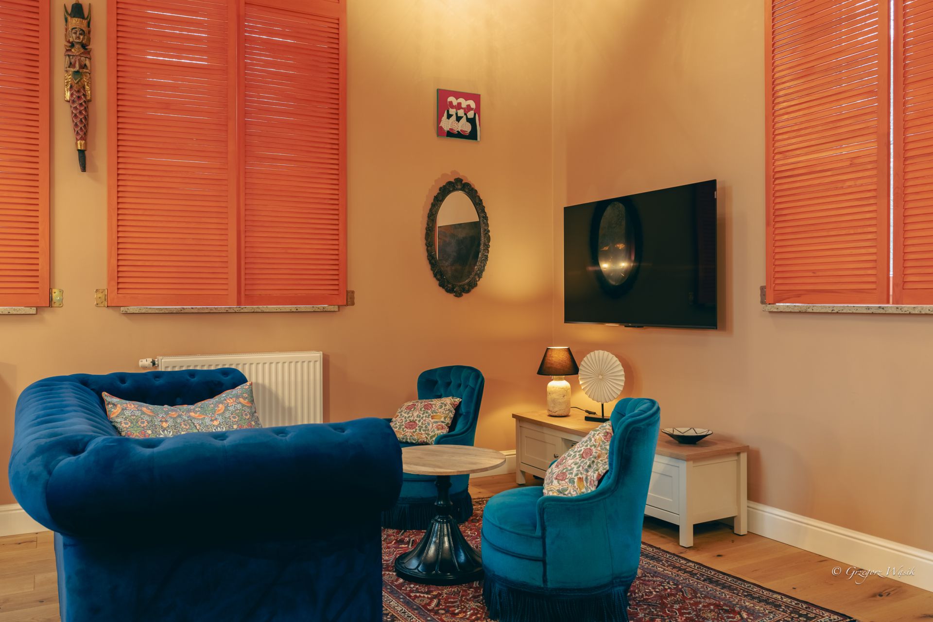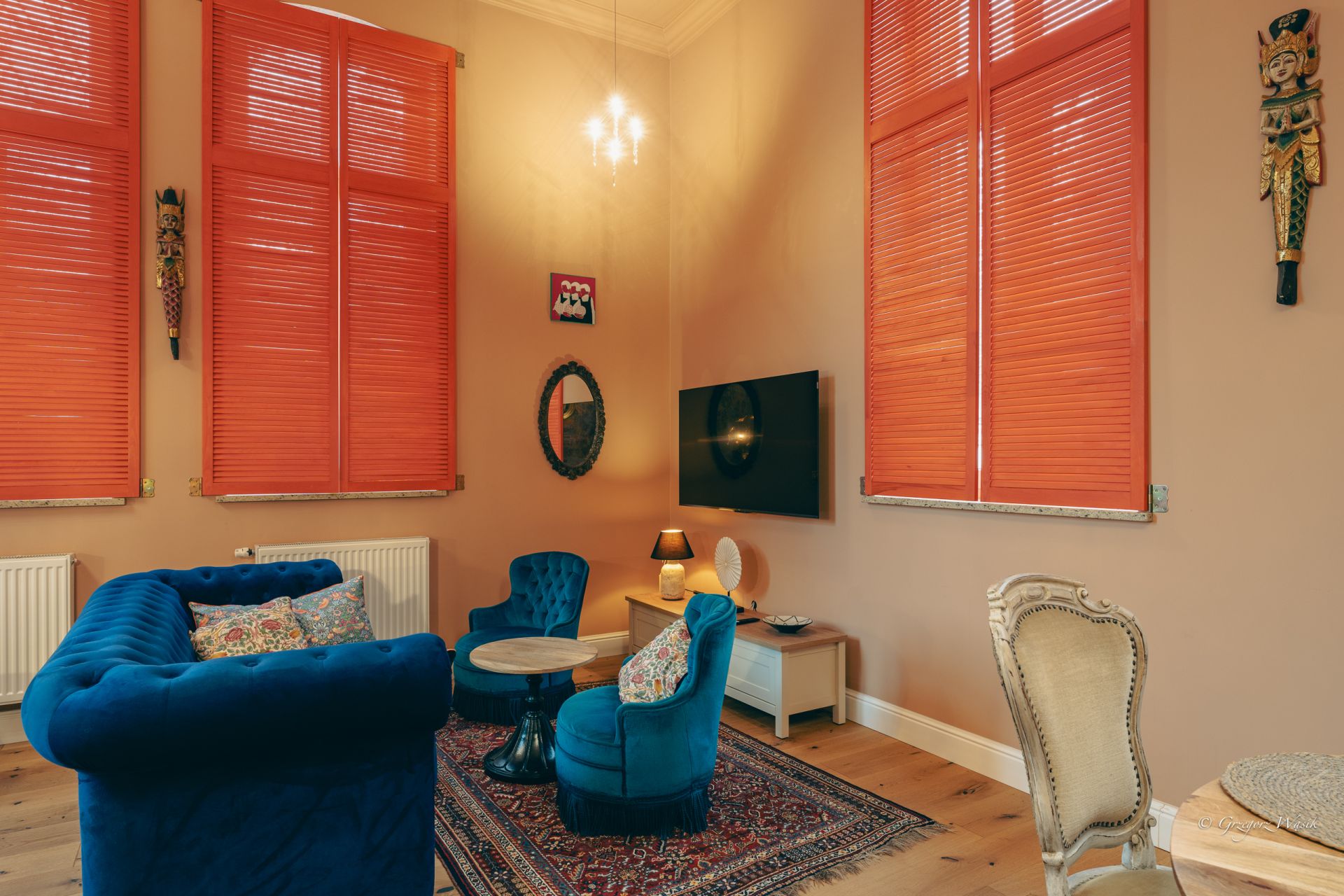 Ale Bosko to apartament dla tych, którzy cenią miejsca z charakterem i dopracowanym klimatem. Wnętrze łączy klasyczną elegancję z artystycznym twistem — ciepłe kolory, wzorzyste tapety i starannie dobrane detale tworzą wyjątkową atmosferę do odpoczynku.