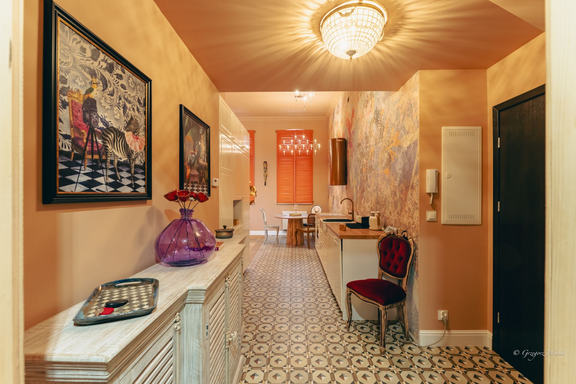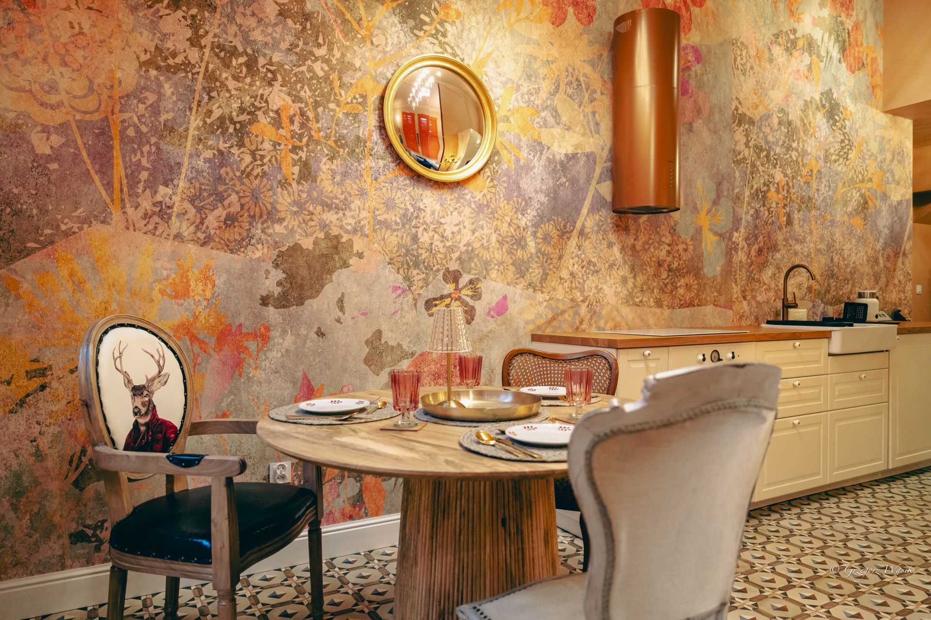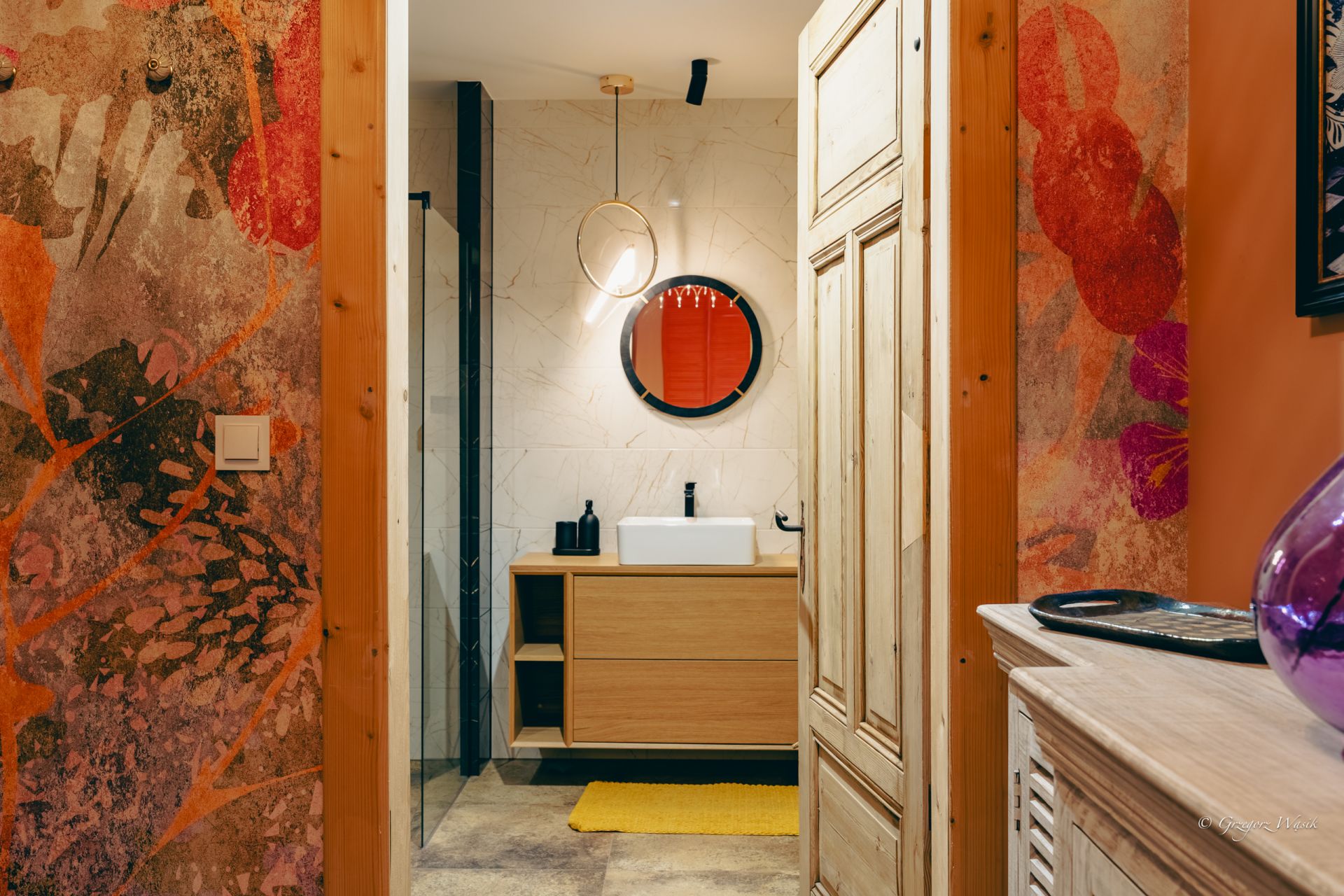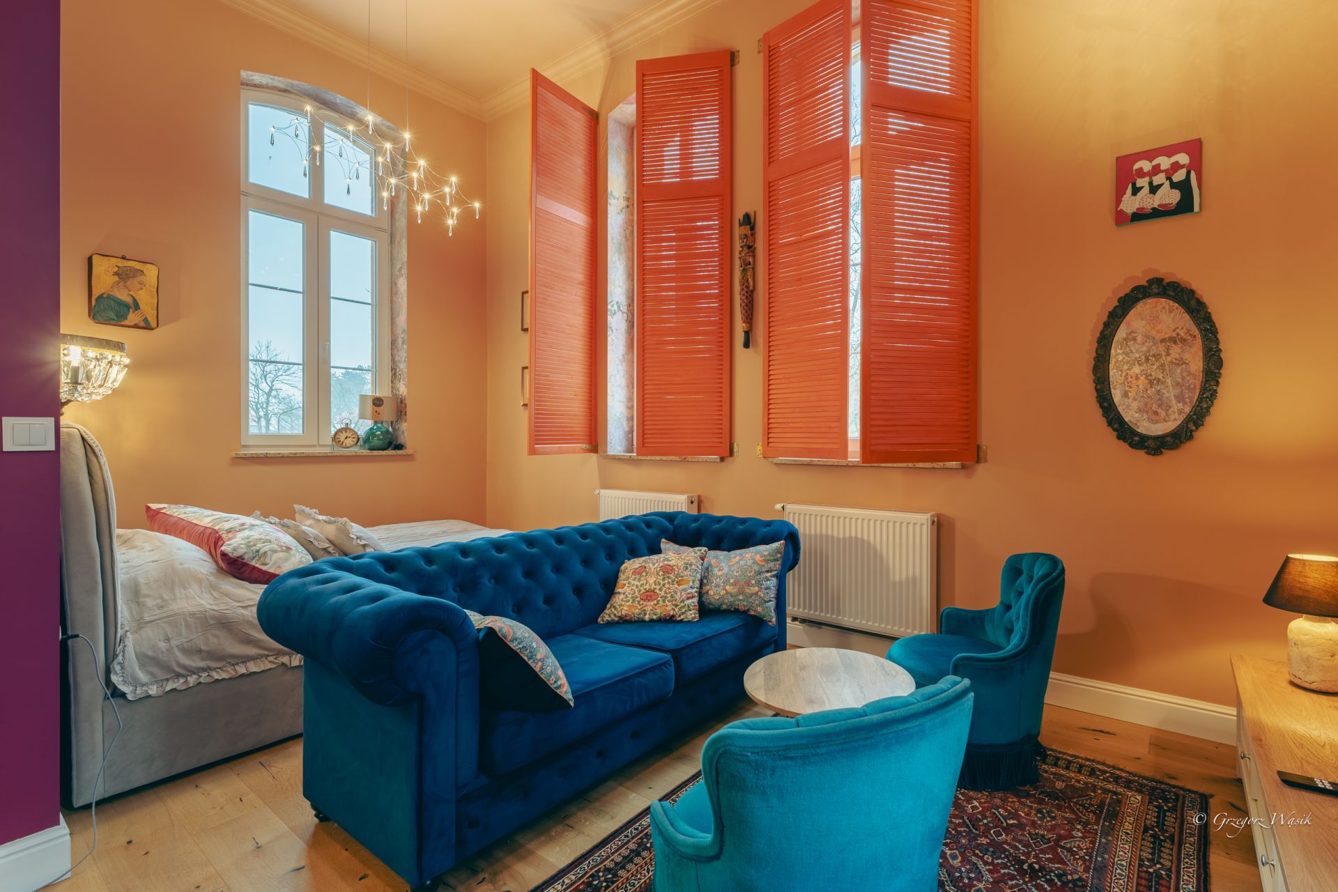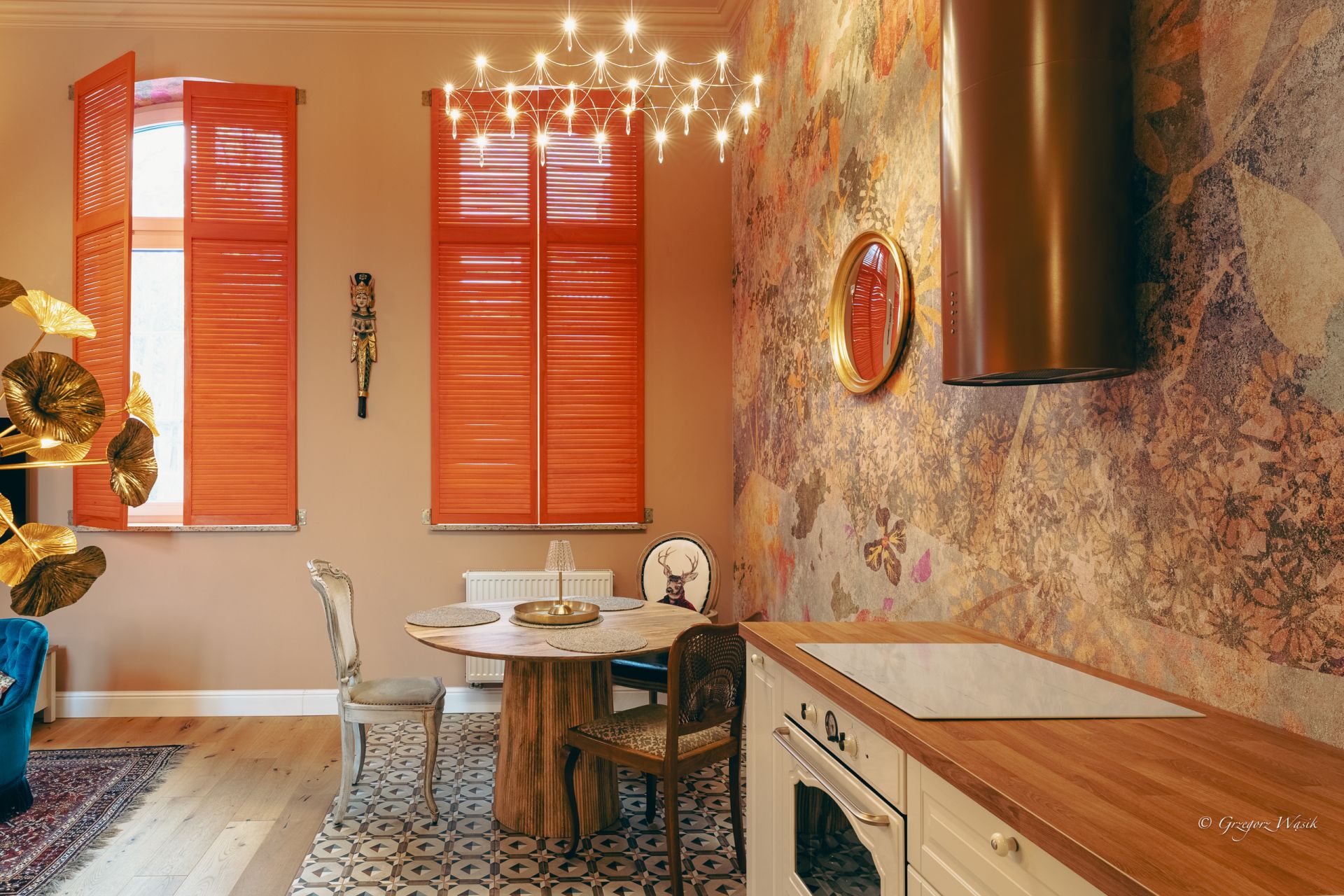 Ale Bosko to apartament dla tych, którzy cenią miejsca z charakterem i dopracowanym klimatem. Wnętrze łączy klasyczną elegancję z artystycznym twistem — ciepłe kolory, wzorzyste tapety i starannie dobrane detale tworzą wyjątkową atmosferę do odpoczynku.