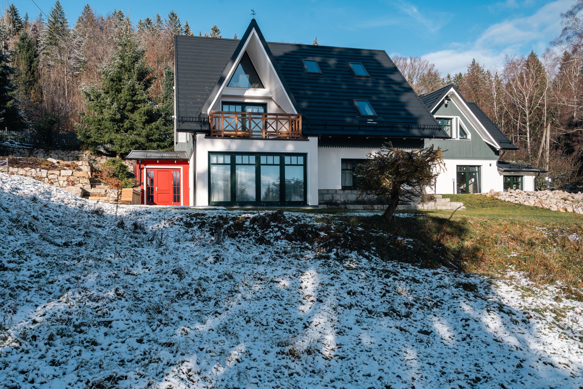 Willa Bukowy Las to kameralne miejsce w Szklarskiej Porębie, stworzone dla tych, którzy cenią bliskość natury i komfort. Z tarasu i panoramicznych okien rozciąga się widok na Karkonosze, a w powietrzu unosi się zapach bukowego lasu. Po dniu na szlaku zrelaksujesz się w saunie lub balii z ciepłą wodą pod gwiazdami. Naturalne materiały, nowoczesny design i otaczająca cisza sprawiają, że każdy moment tutaj jest prawdziwym odpoczynkiem.