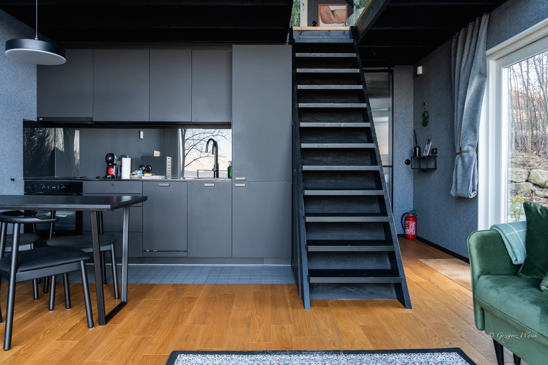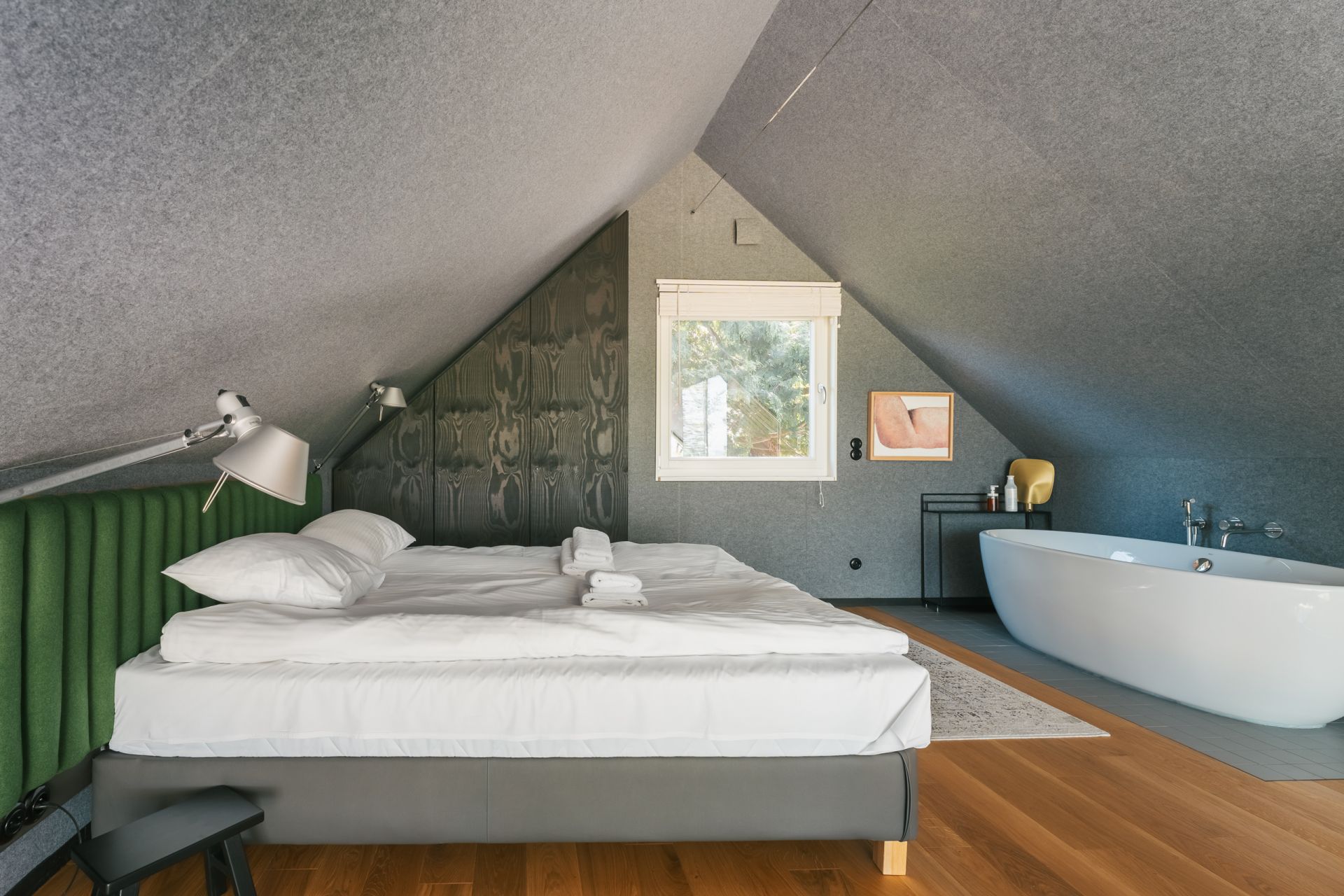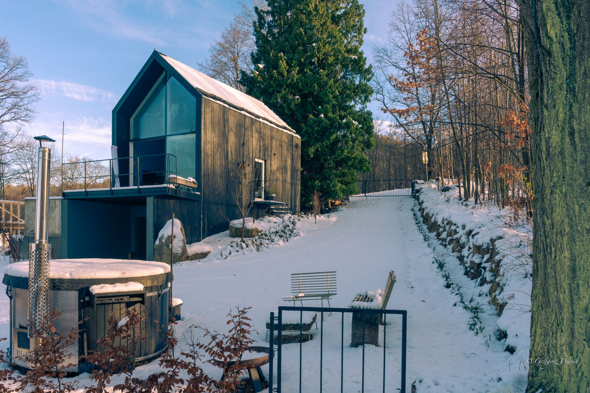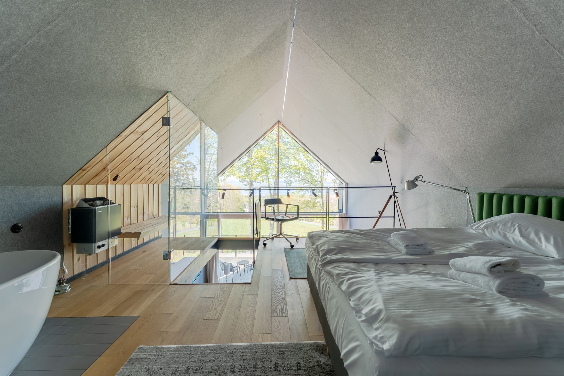 Na zewnątrz czeka balia pod gwiazdami, w sypialni sauna z panoramicznym oknem i cisza, która koi bardziej niż jakakolwiek muzyka.